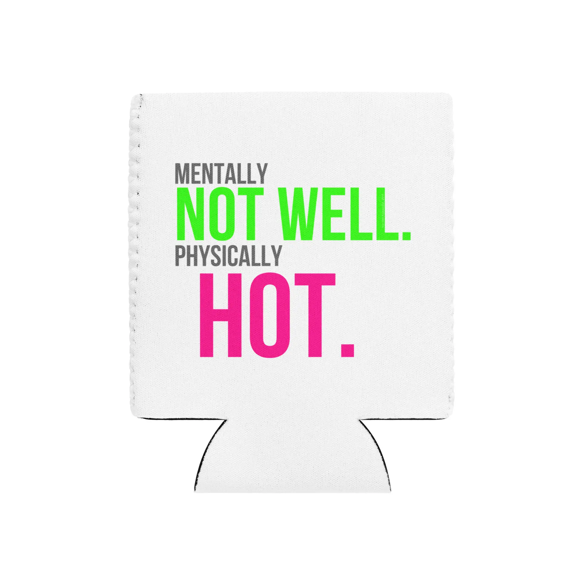 Keep your drink cold and your personality warm. This neoprene can cooler wraps your beer in “Mentally Not Well. Physically Hot.” energy and our signature smiley logo — because even your White Claw deserves branding.